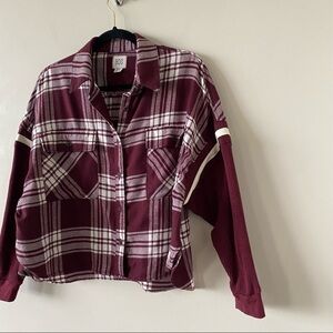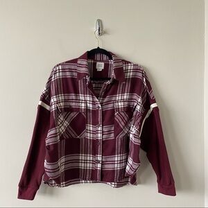 Cozy plaid flannel button-down shirt from BDG with coordinating knit sleeves. Find it only at UO.