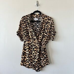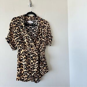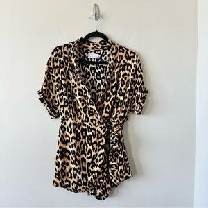 Urban Outfitters Cheetah Wrap Romper will be a cute statement piece for summer! elastic band on the back, tie on the front.