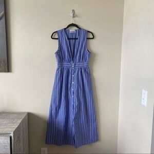 URBAN Outfitters-Striped Button Down Deep Plunge Midi Dress (Size:Small)