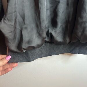 URTHEONE size S long sleeve gray blouse with silk front and flower accent