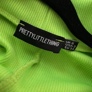 US 2 | Pretty Little Thing Lime Green Quarter Zip Long Sleeve Sweater Crop Top