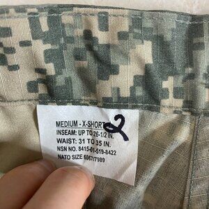 US Army -Trouser- Combat Camo Uniform Ripstop Sz MediumxShort SPM100-05-D-0408