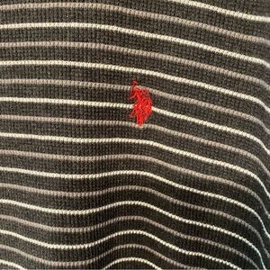 Stylish long sleeve light sweater/shirt with black and gray stripes. U.S. Polo Assn.