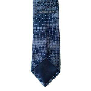 US Polo Assn Men's Silk Blue Necktie Geometric pattern Classic Timeless Preppy