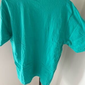 Turquoise V-neck tee with embroidered logo. Ideal for everyday wear.