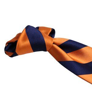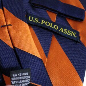 U.S. Polo Association Men's Diagonal Striped Tie 100% Silk - Orange & Navy Blue