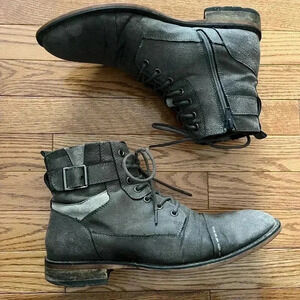 [US10] Bullboxer B-52 Black Mens Ankle Boots Lace Up & Side Zipped