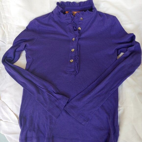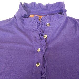 US $125 Tory Burch Lidia Long Sleeve Ruffle Polo Shirt Top Blouse Size S EUC Peru.