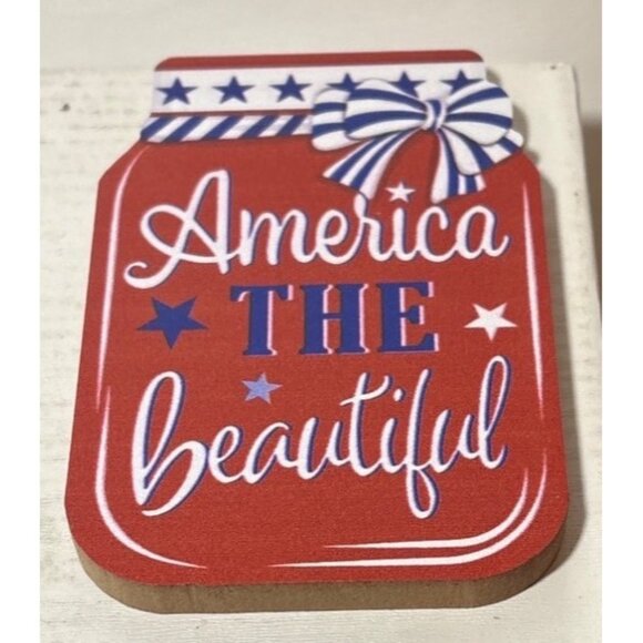 USA Patriotic Wood Decor Set 4th of July American Flag & Stars Design
