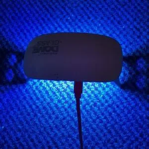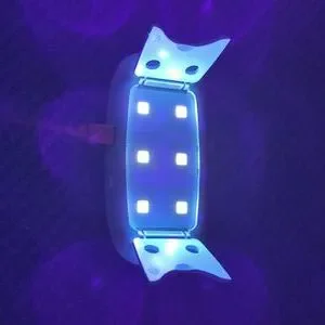 This is a UV light with a 15-second and 60-second timer. Tap the button once for 15 seconds, tap the button twice for 60 seconds. Comes with cord to plug into your USB base but does not come with a wall plug. Approximately 4" wide. There are 2 of these lights available.