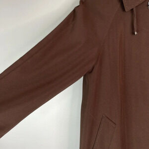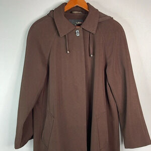 UTEX Hooded Trench Coat Brown Raglan Sleeves Pockets Padded Shoulders Classic 12
