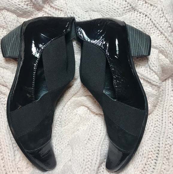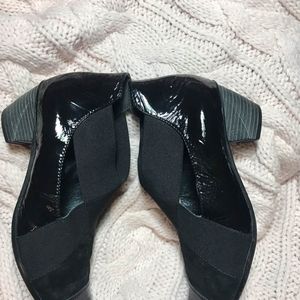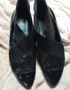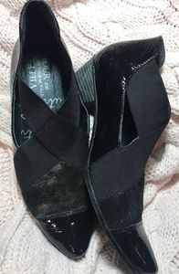 UTV leather slip-on shoes. Mix of leather and patent leathers from Italy. Elastic criss cross front for comfort and fit. Great Used Condition.😍
