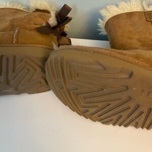 UGG Bailey Bow boots . Very warm and comfortable. Good pre loved condition. Right boot has a little water mark on the front.