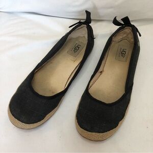 Ugg Black Canvas Slip On Flats with Bow Back Detailing Size 7.5