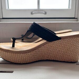 Ugg Platform sandals in black suede. Barely worn (I'm decided I did not need to be this much taller!!) but these are super comfy to walk in.