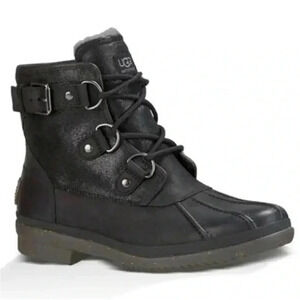 Ugg Cecile Waterproof Leather Black Boots- US 8