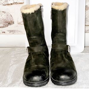 Ugg chantay 1004151 womens nubuck Biker Style Shearling Lined Winter boots Black Sz 6.5