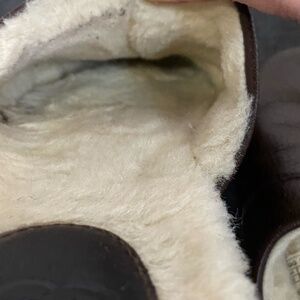 Ugg Mens Brown Leather Sherpa Lounge Slippers- Sz-10