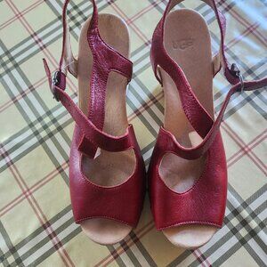 Ugg Strappy Studded Heels Shoes Sandals Platform Buckles Dark Red Size 39 8