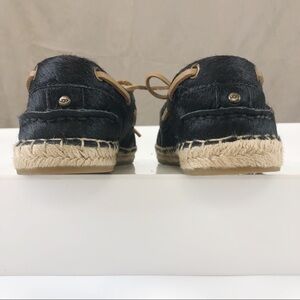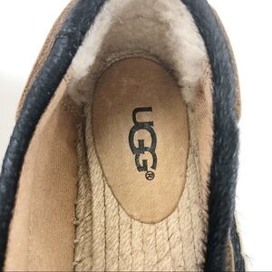 These Black size 7 slip on espadrille loafers are in Very Good condition. A touch of sheepskin for comfort on inside black heel - a nice UGG touch! Clean, pet free, smoke free and odour free. Ready to wear.