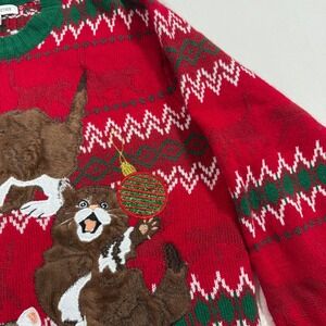 Ugly Christmas Sweater Cats Kittens Fair Isle Red Green Knit M Holiday Cozy Xmas