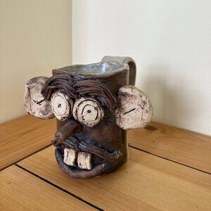 Ugly Face Buck Tooth Stoneware Mug Ceramic Pottery Cup with Handle 4" tall