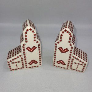 Ukrainian design grain elevator buildings set of 2 salt & pepper shaker set. Complete with plugs in very good used shape as shown.