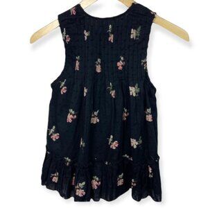 Ulla Johnson Cecil Blouse in Black Flint and Women’s Size 0 (= XS). Peplum style. Swiss dot detailing throughout. Floral print. Sleeveless. Crew neck. Button details. 100% cotton. Hand made in India. Excellent pre-loved condition. No visible flaws.