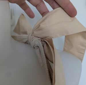 I used fashion tape to keep the ribbons from moving around, and the tape left a small square mark on the underside of the ribbon on both sides, as pictured. Not seen when worn