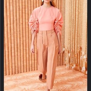 Ulla Johnson Lorna Ruched Cotton-poplin Blouse - Pink