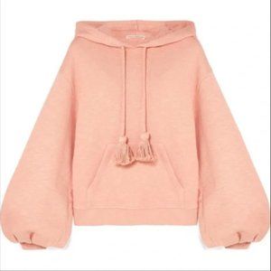 Ulla Johnson Mel Tassel Pullover Cropped Hoodie Black 100% Cotton Pocket S P
