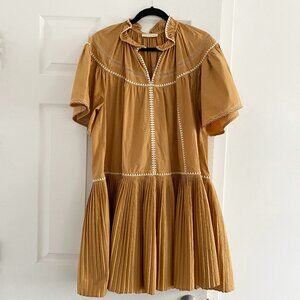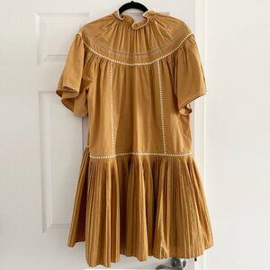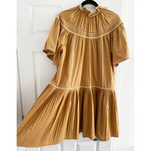 Ulla Johnson Pleated Hem Dress, size 12. Fits true to size in the armhole, but it's a wide fit in the body (by design of course).