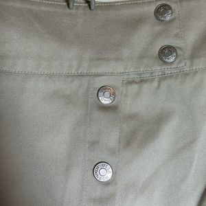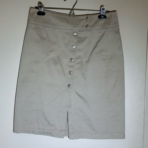Ulla Johnson tan career pencil skirt with silver buttons down the front with a slit. 100% cotton designer skirt. For those looking to impress. Perfect for those who work in an office. Condition is used great