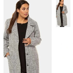 Ulla Popken | Plus Size Tweed Button Front Pocket 3/4 Coat