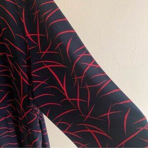 Stylish black tunic with red patterns. Perfect for any occasion.