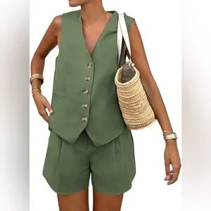 ๐ Olive Vest + Tailored Shorts Set โ Size M