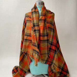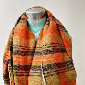Luxuriously soft and cozy scarf/wrap in a deep burnt orange, camel and black plaid that is reminiscent of the iconic Burberry tartan. This piece can be styled in so many different ways -- as a scarf, a wrap, a shawl... So elegant, versatile and timeless, it will complement and finish any outfit. Perfect layering piece as we head into winter!