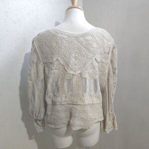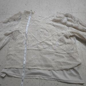 Elegant cream textured sweater with intricate patterns. Perfect for cozy days. has 2 layers tank top underneath, then top layer.