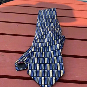 This beautiful tie is in like new condition. Rich blues, golds and gray.