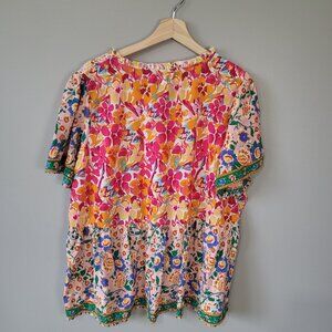 Brighten your wardrobe with this vibrant floral blouse. Featuring a stunning mix of colors, this top is perfect for any occasion.