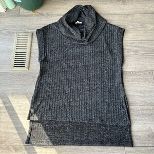 Umgee Grey Ribbed Knit Cowl Neck Lagenlook Tunic Top