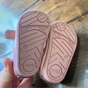 Like new condition - metallic pink with flex zone rubber soles and velcro closure - features cloud tech memory foam insoles - size Euro 17, US 2.5 Circa 2016