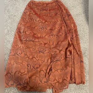 Un Jour Ailleurs Orange Vintage Print Full Length Skirt Women's Size 10 FR 40