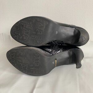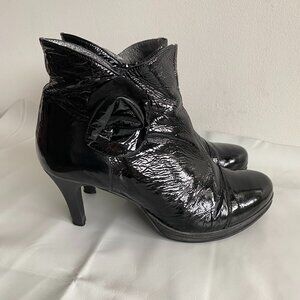 Un Tour En Ville Black Patent Leather Heeled Ankle Boots 8.5