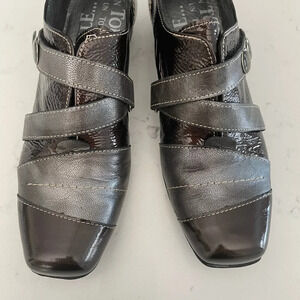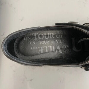 Un Tour en Ville Casual Funky Sgl Strap Patent Leather Shoes Brown Grey Sz 36