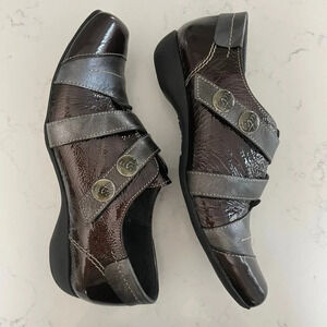 Un Tour en Ville Casual Funky Sgl Strap Patent Leather Shoes Brown Grey Sz 36