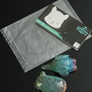 Excellent condition pair of glittery dog and elephant sofubi, Daydream Nimbus and Elfie. This is a collaboration by artists Too Natthapong, Paulus Hyu and Unbox Industry. Was kept in a display case and is in perfect condition. Made of high quality PVC and a highly sought after duo of figures in the vinyl collecting world. Produced and sold around October 27, 2018. Includes all original packaging.