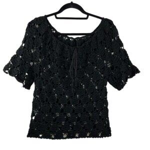 Unbranded Black Crochet Boho Witchy Grandmacore Top