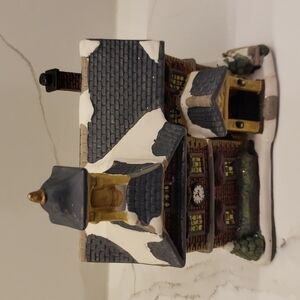 Unbranded Christmas Village House Church Clock Green rooftop Steeple 6" x 7" x…