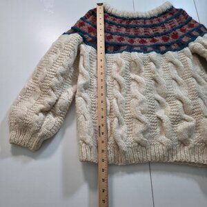 Unbranded Handknit Sweater Womens S/M Cream LS Fair Isle Cable Chunky Boho Cabin